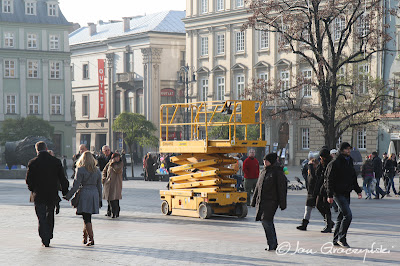 New Technics Art na Rynku Głównym w Krakowie, w niedziele 20 listopada 2011. Nie wiadomo po co i na co ktoś pozostawił na środku Rynku zabawkę dla dużych chłopców.